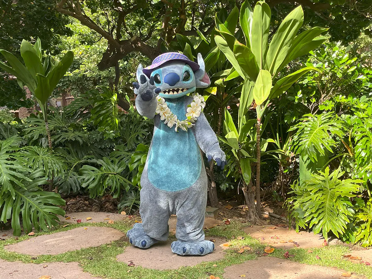 朝食時に登場するディズニーのキャラクターはミッキーマウス、ミニーマウス、スティッチ、プルート、ドナルド、グーフィー(写真上)など数多くのキャラクターが登場しますよ。
