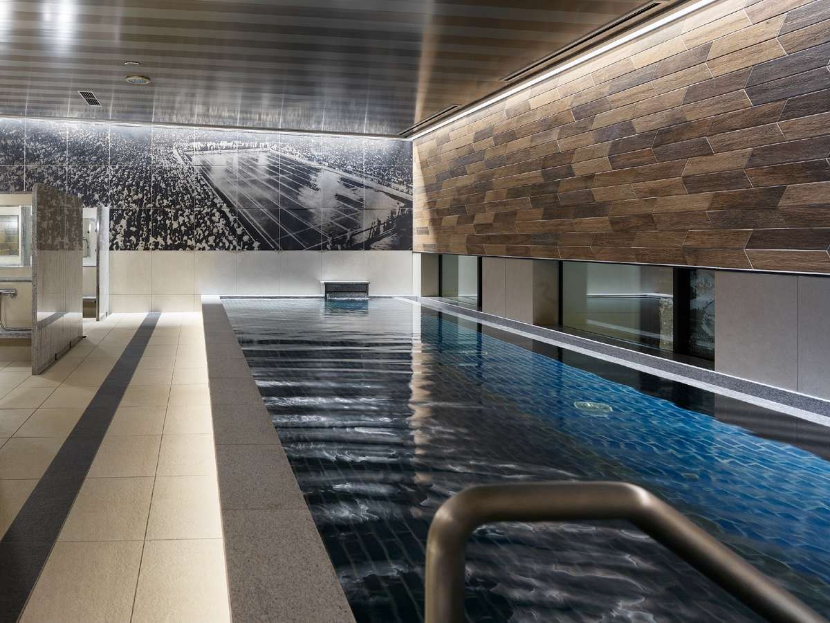 2019.11/22にオープンの三井ガーデンホテル神宮外苑の杜プレミアは、広い大浴場(写真上)、フィットネスルーム(宿泊者無料)、レストラン、ベーカリーを完備。