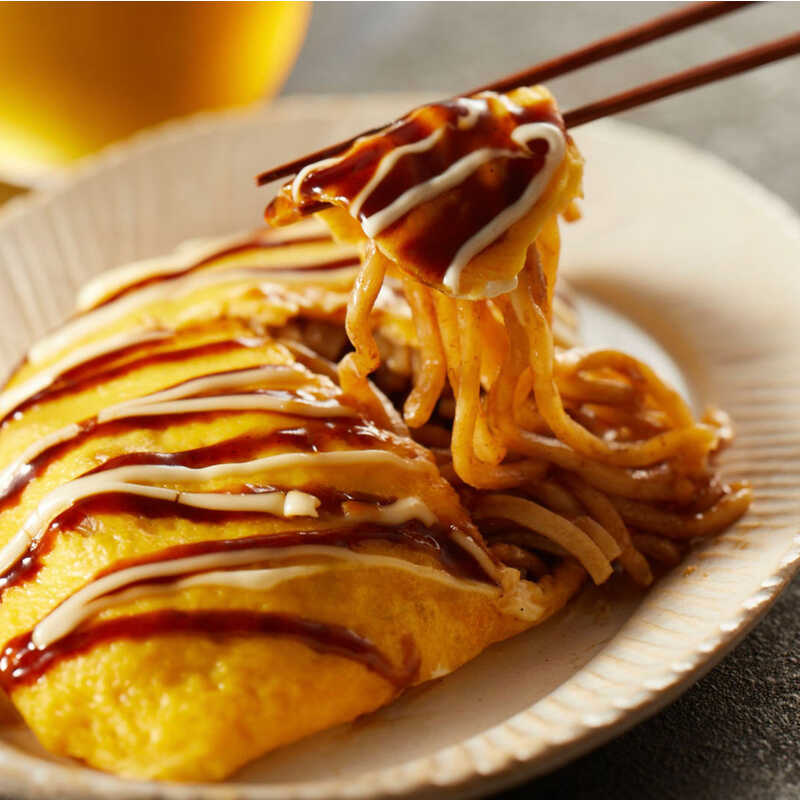 オムそば(写真上)、たこ焼きとのセット商品もあります。是非、千房の大阪お好み焼きを堪能してください!