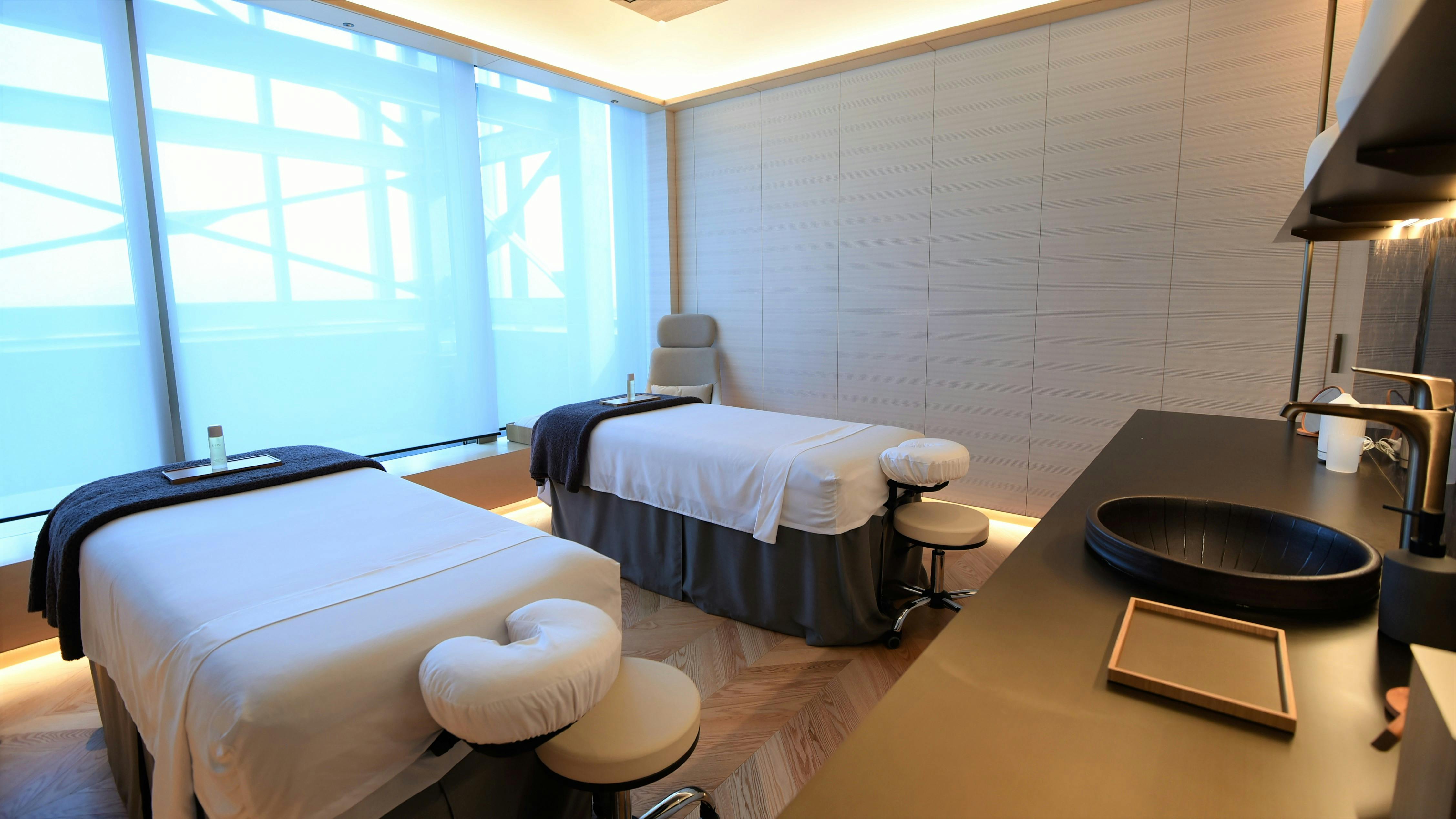ザ・リッツカールトン スパ(写真上)にはシングルとダブルのトリートメントルームがあり、オリジナルのプログラムを用意しています。スチーム&ドライサウナも完備。