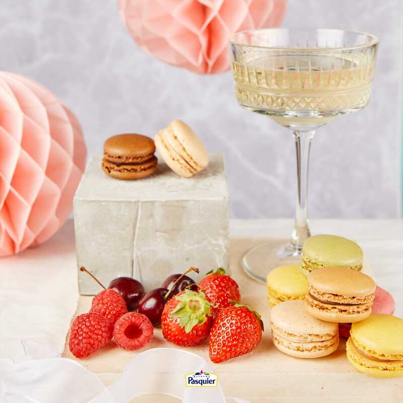 今回はパスキエの商品からバニラ・ピスタチオ・コーヒー・ラズベリー・レモン・チョコレートが2個ずつ入ったマカロン(12個入り)(写真上)、